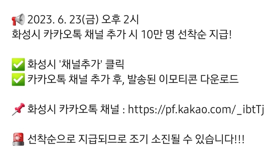 ▪️ 방법 : 당일 정시, "화성시" 채널 추가