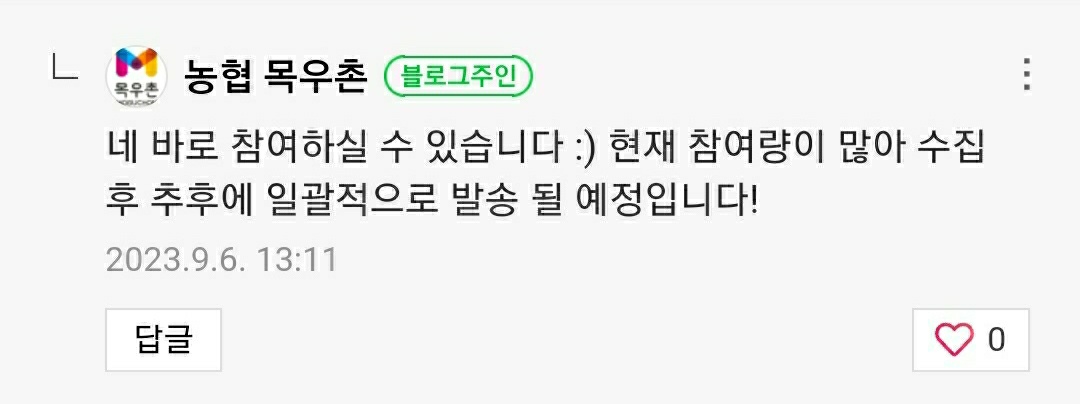 카톡 "농협 목우촌" 채널에서 주관하는